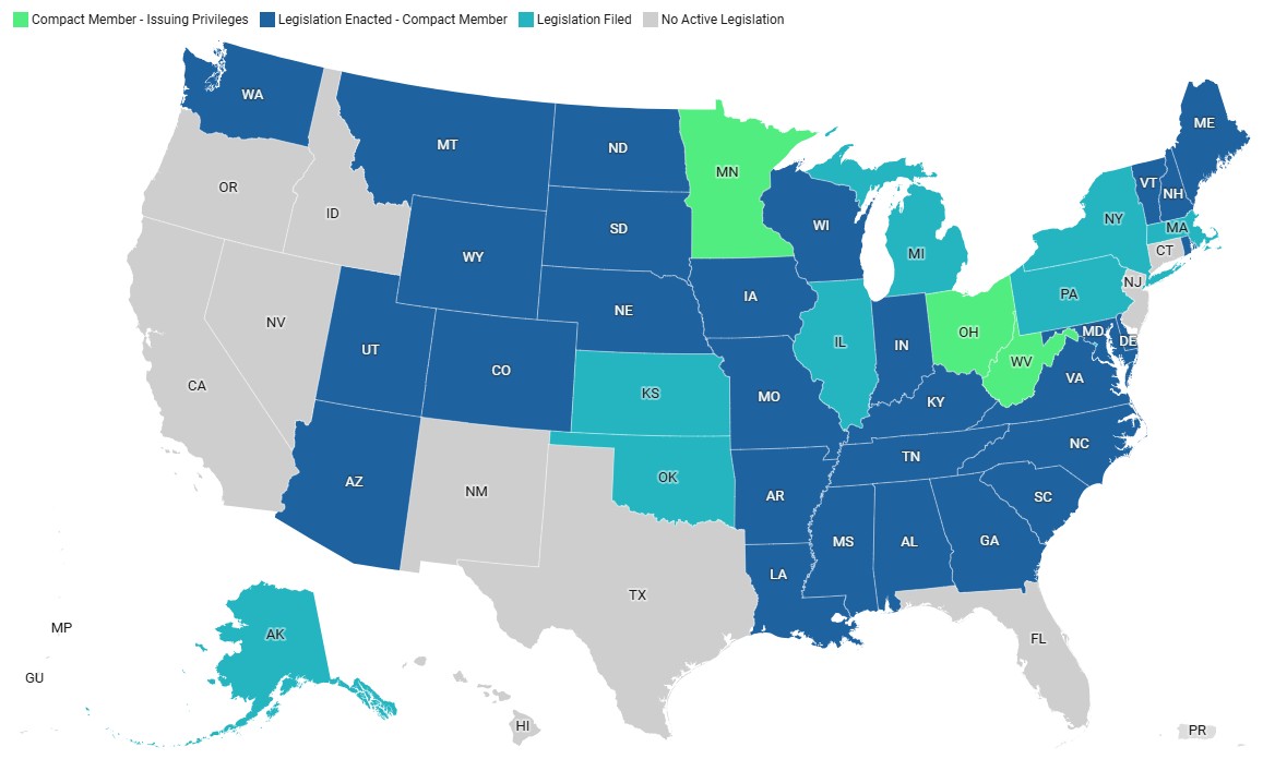 OT Compact states with pending legislation to join include Massachusetts, Michigan, New York, Oregon, and Pennsylvania.